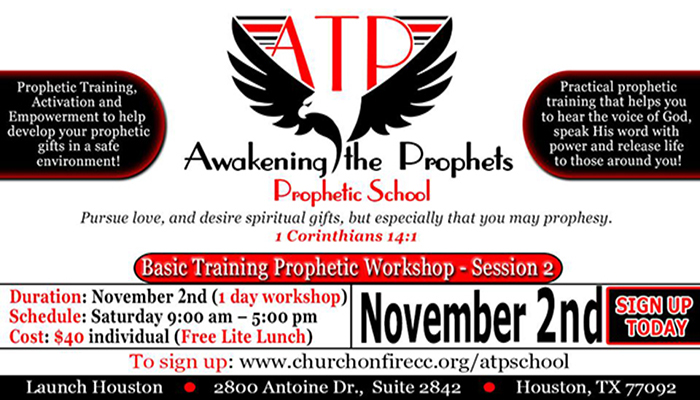 Awakening the Prophets is a prophetic school that is comprised of a team of seasoned, mature, tested prophetic voices, who speak on regional levels, national levels and international levels.